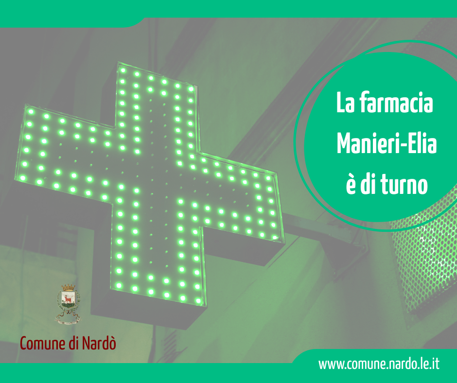Sabato 6 dicembre sarà aperta anche la Farmacia di Nardò