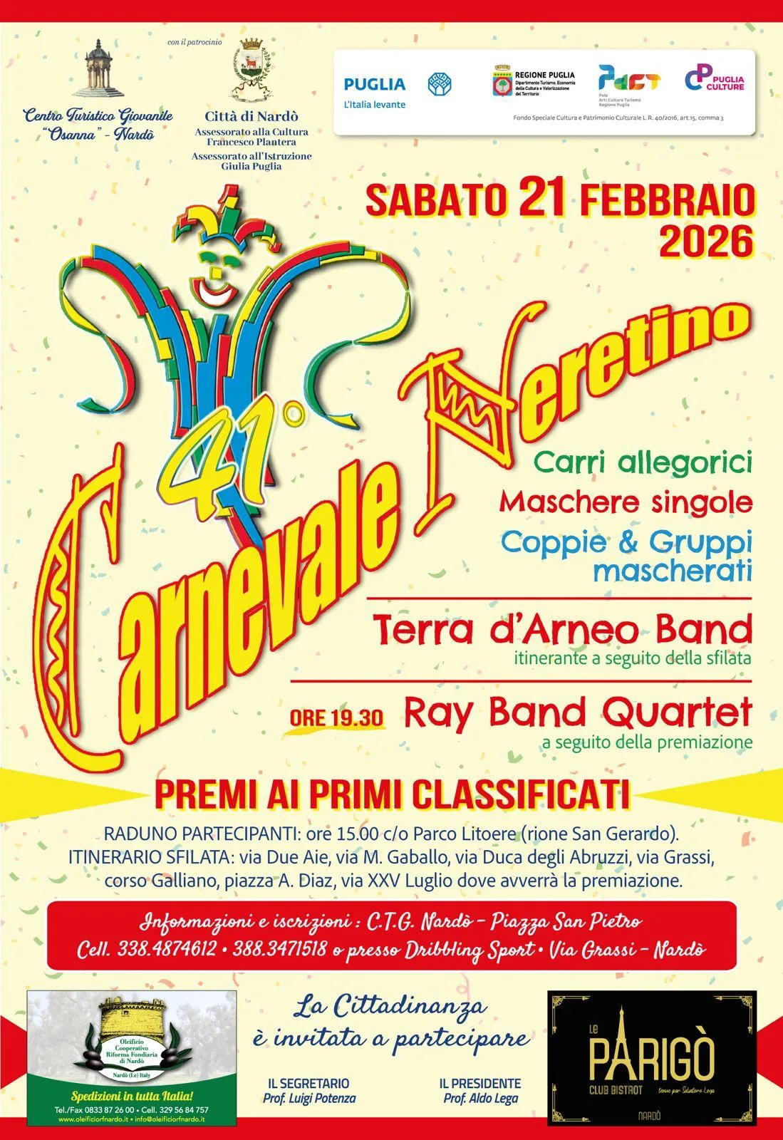 "Carnevale neretino", sabato carri e maschere per le vie della città